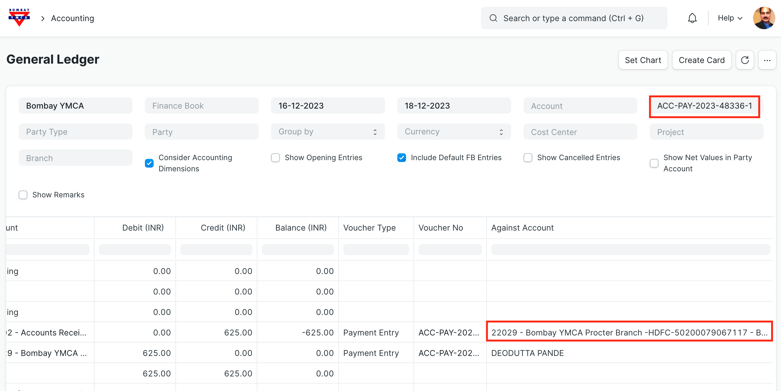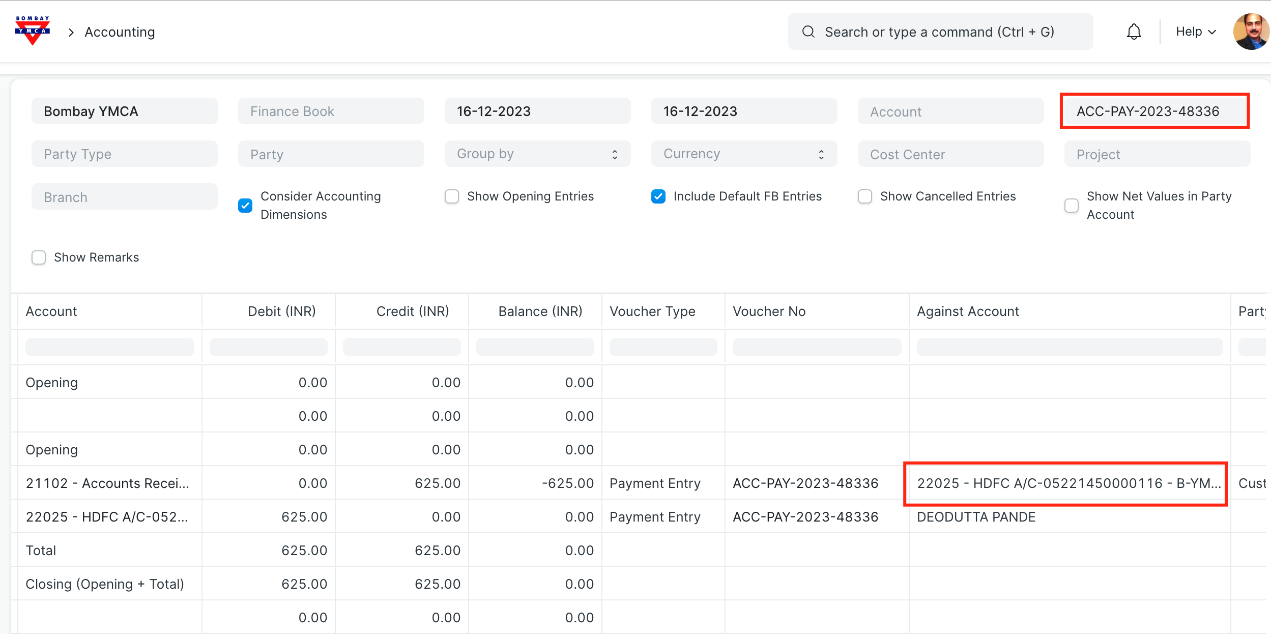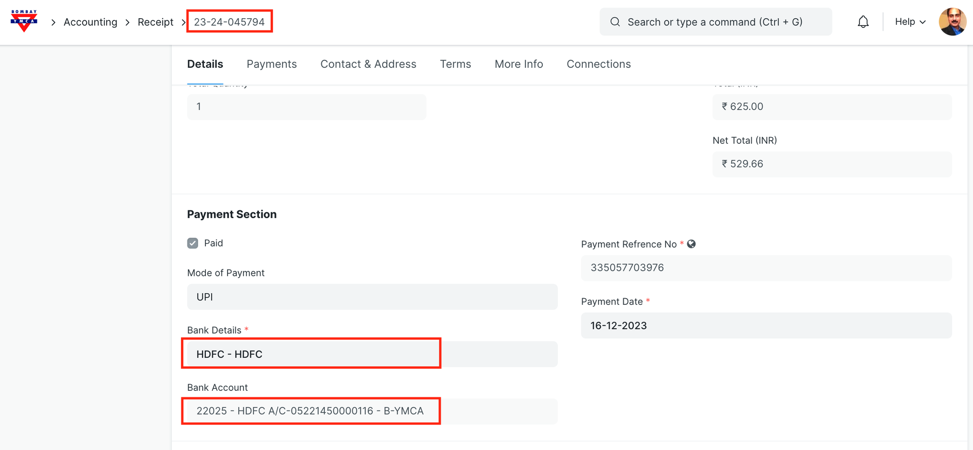 Bombay YMCA - How to Change Wrong bank in Receipt