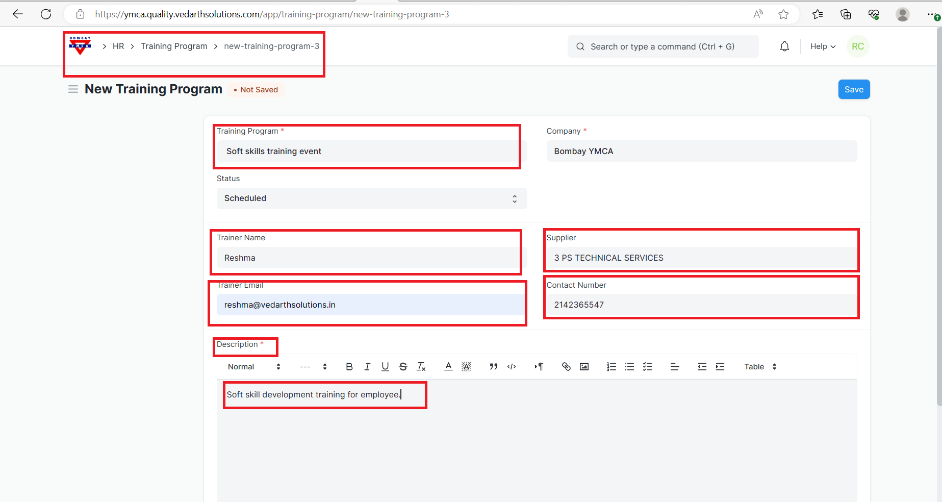 Note: By default, the Status of the Training Program is 'Scheduled'. However, you can change the status to 'Completed' or 'Cancelled' as per the requirement.