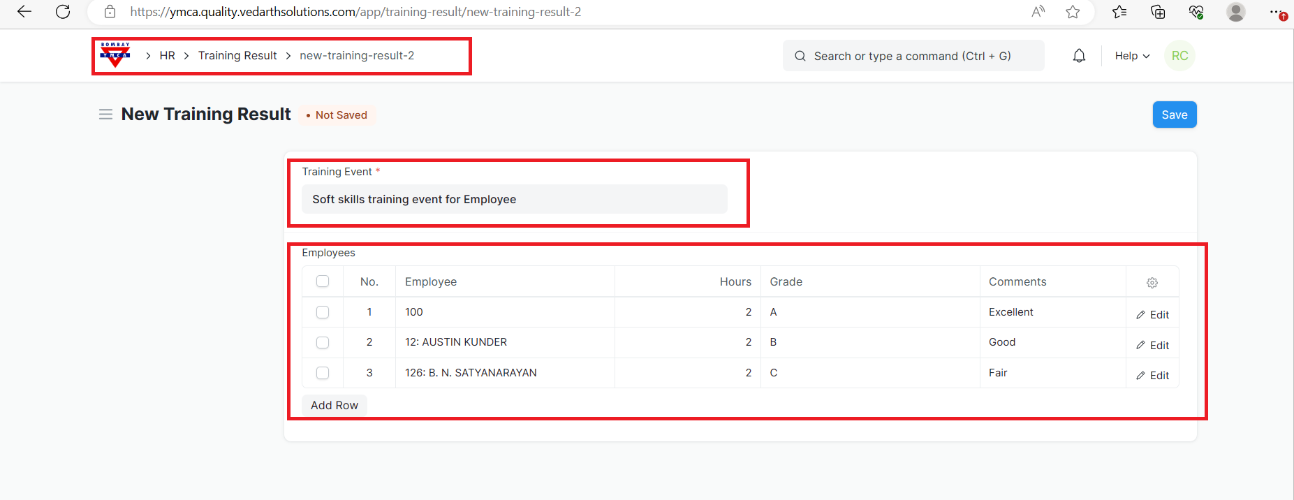 After completion of the training event, employee-wise training results can be stored based on the evaluation done by the trainer.