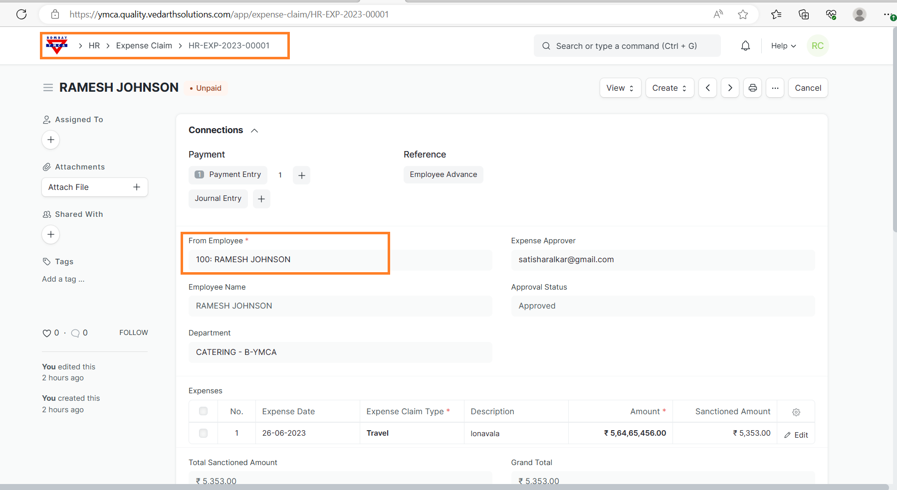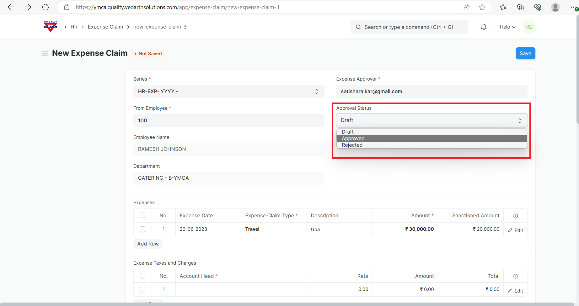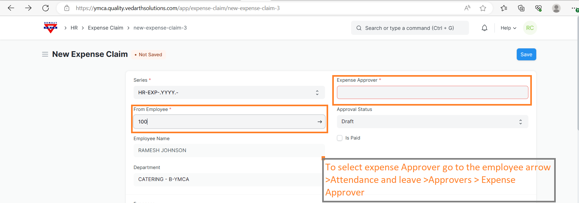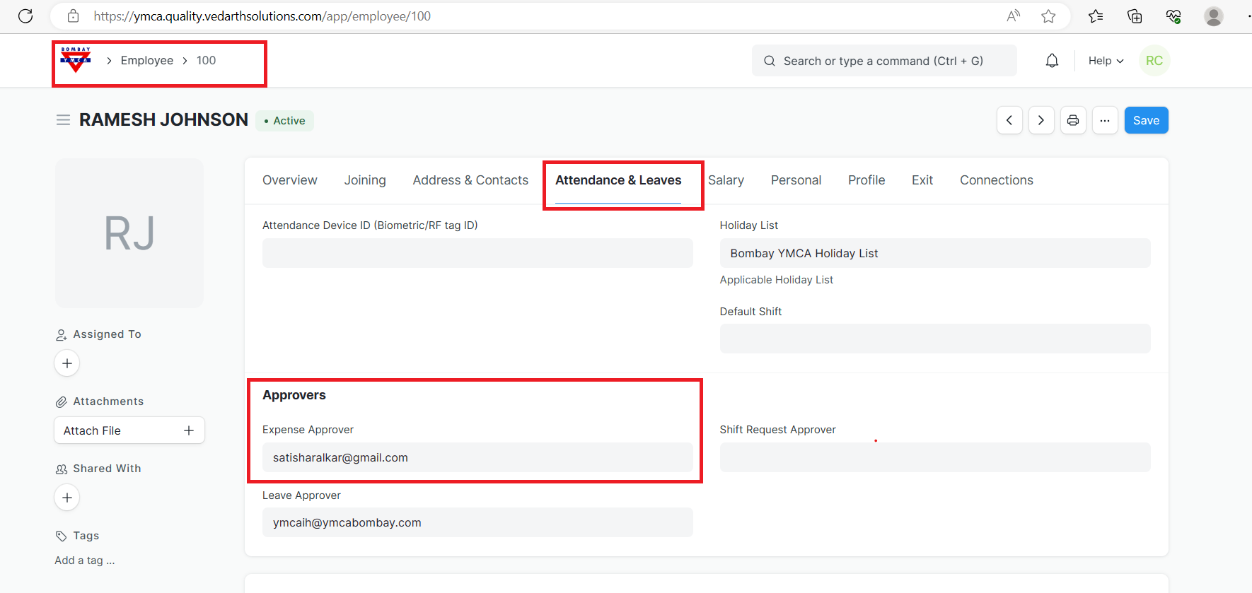 3.Select the Expense Approver field and also from Employee >Attendance & leaves >Approvers >Expense Approver.