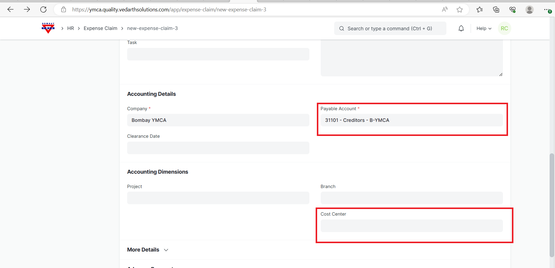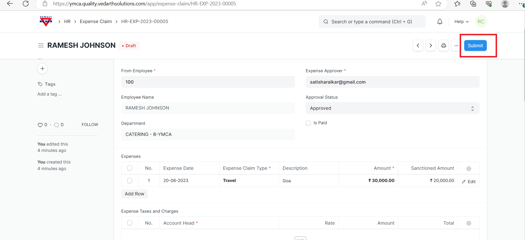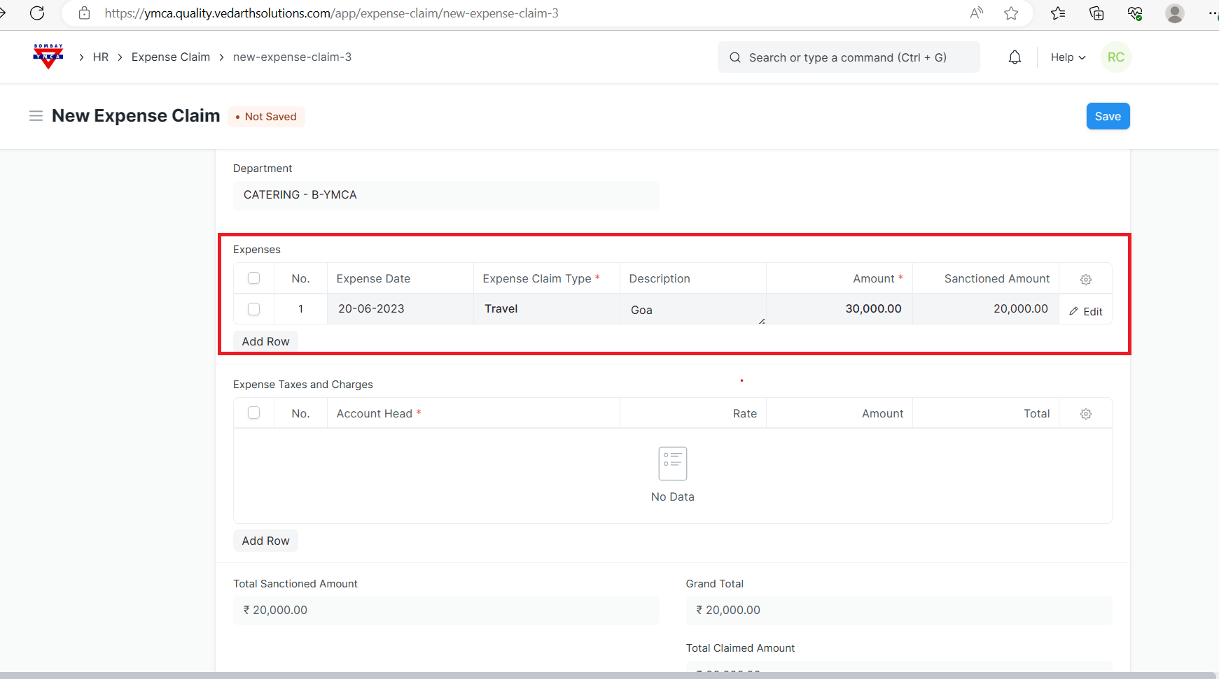 4.Enter the Expense Date, Expense Claim Type and the Amount. Additionally, you can also enter the Expense Taxes and Charges.