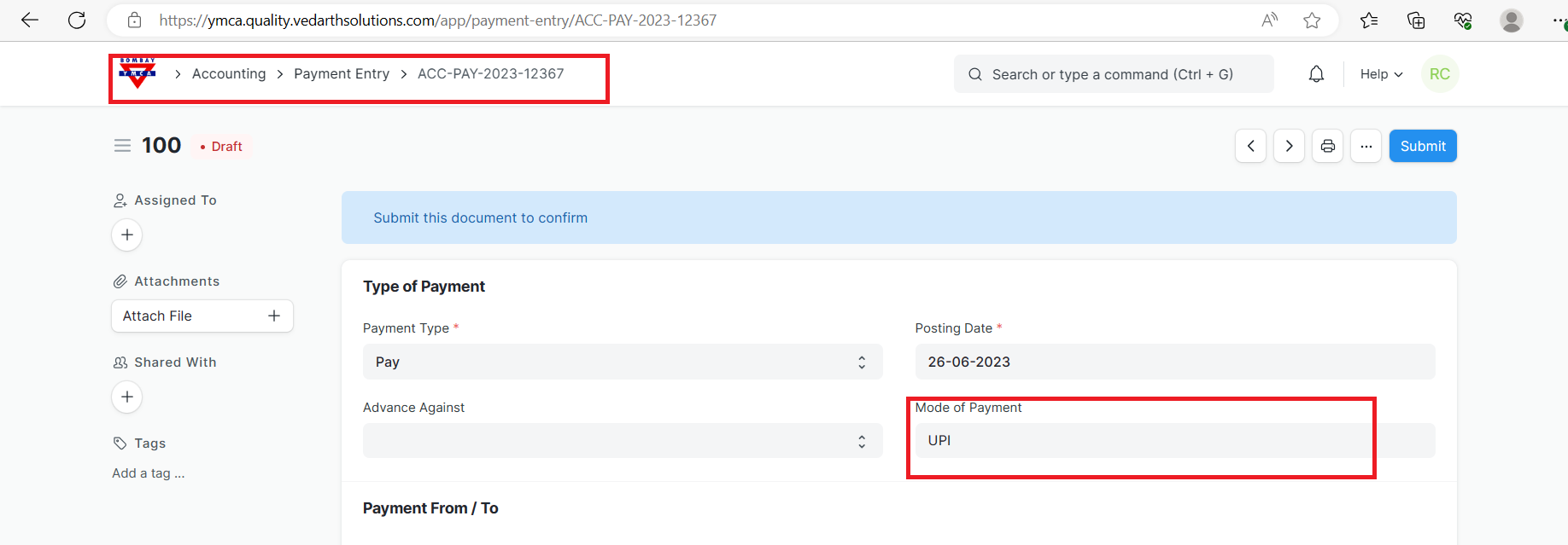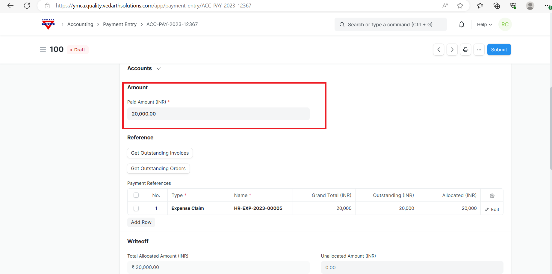 c]You can see the Paid Amount. This has to be Save and Submit.