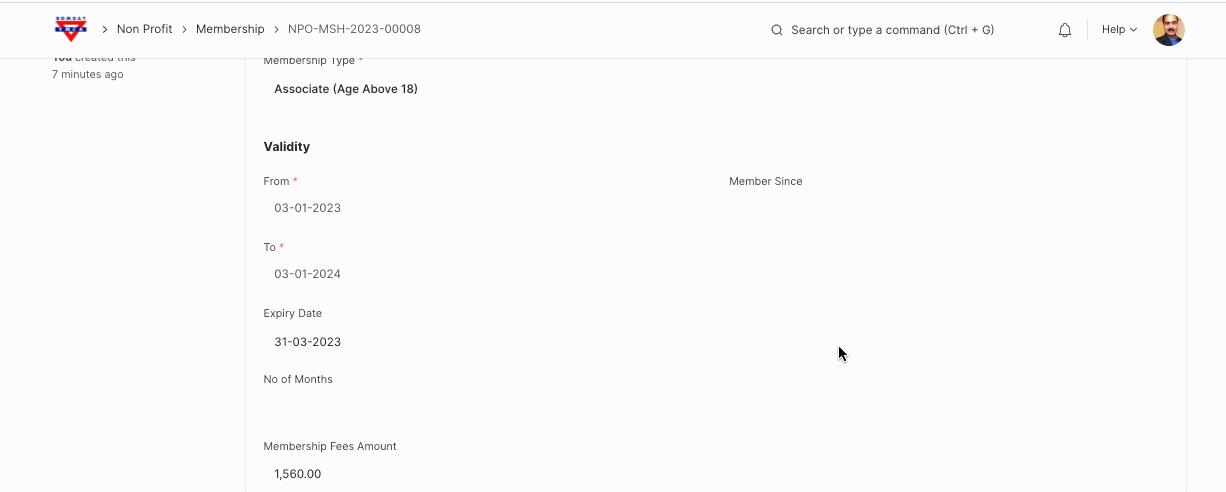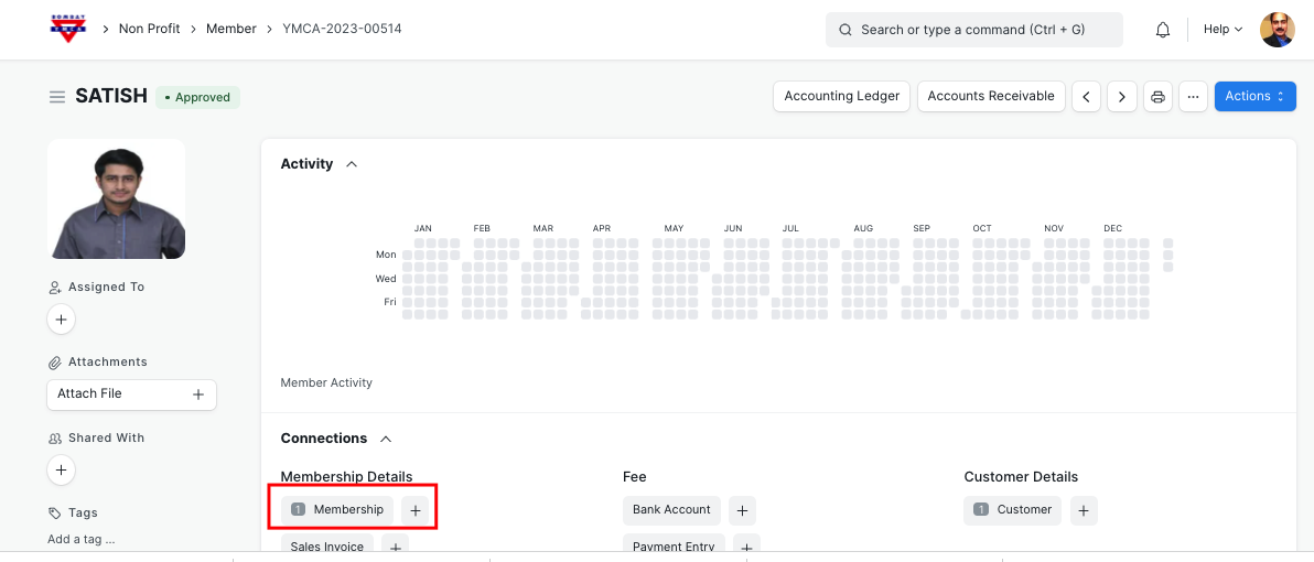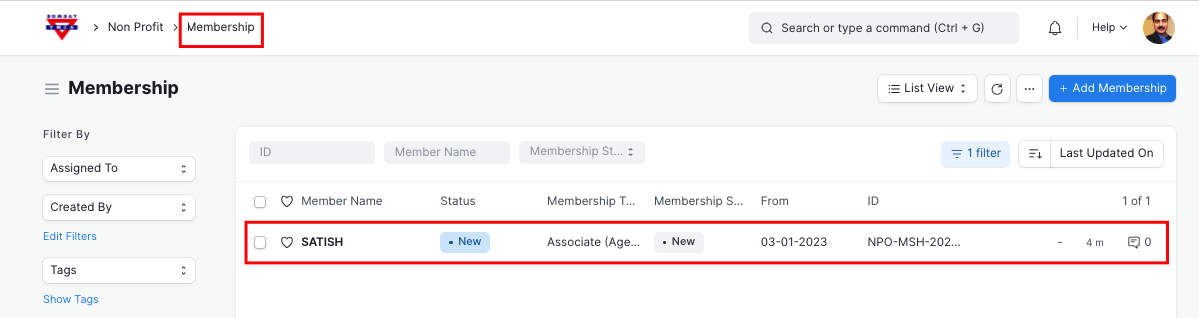 - After Member approval, "membership" record will be created in the background and it will be available for payment entry.