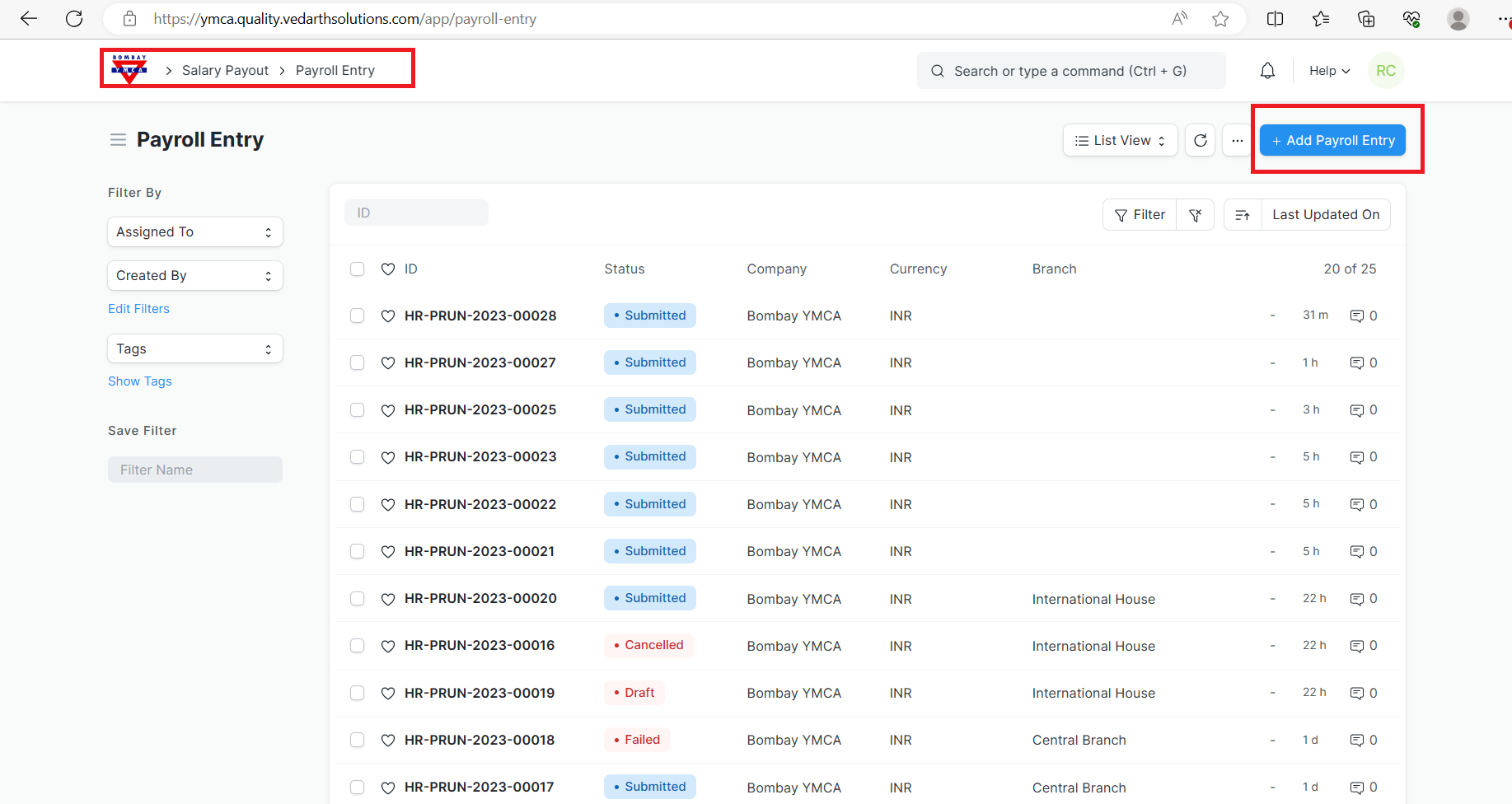 - Go to to Payroll Entry list, click on New.