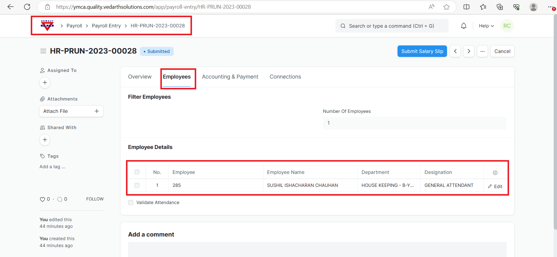 5.Once the list of Employees is fetched, click on the Create Salary Slips button to generate Salary Slips.