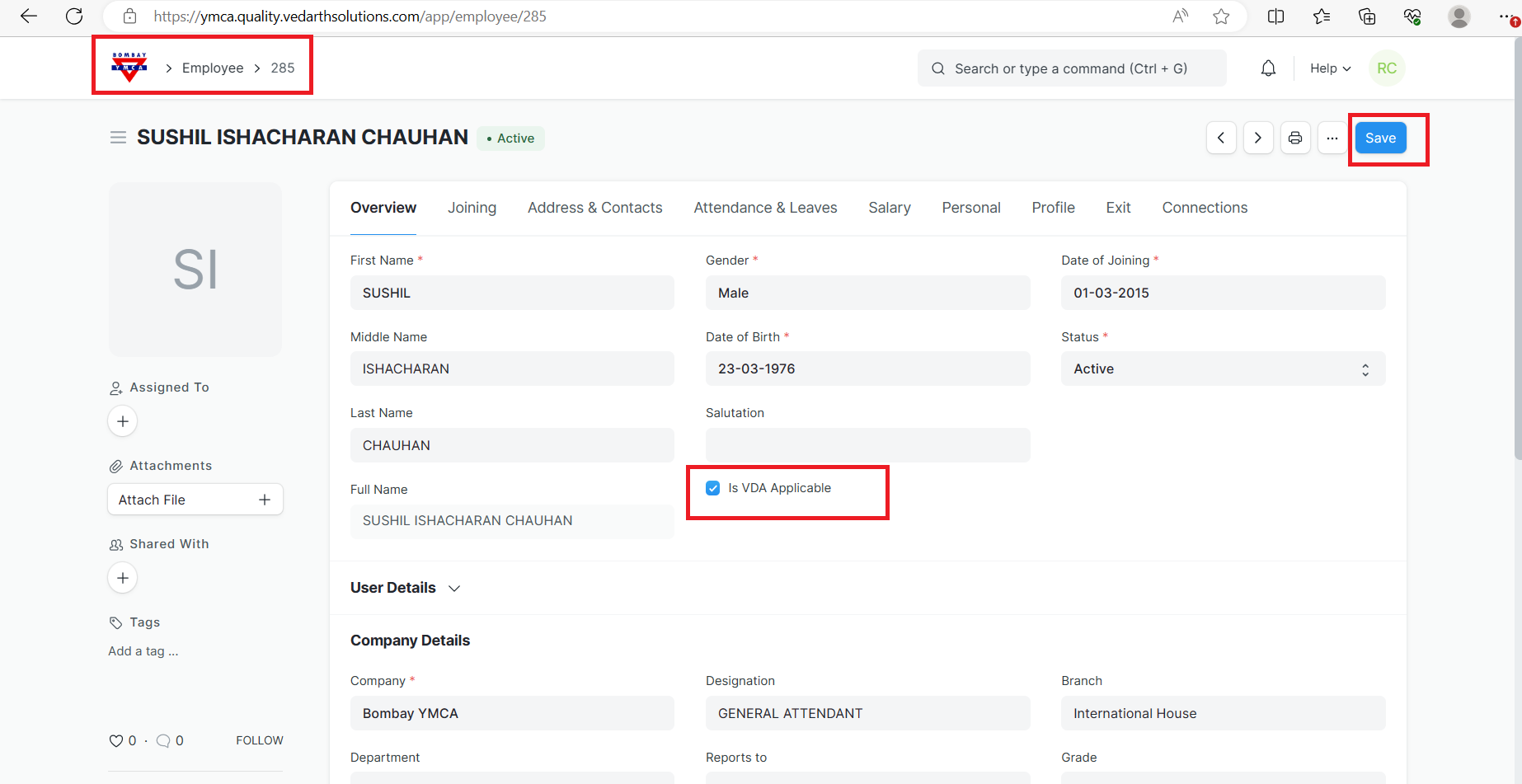 1] First, check if VDA is applicable (checkbox is tick) for that particular employee.