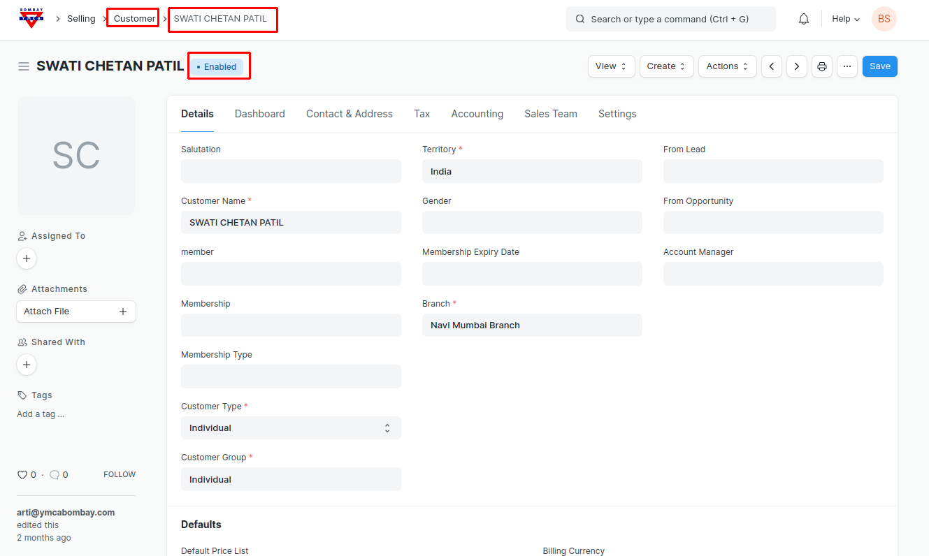 Note : If member is first Customer and later join YMCA Membership Existing customer will not get linked with the newly created member or membership, the new customer will get created here. To avoid confusion when new customer created you can disable existing customer.