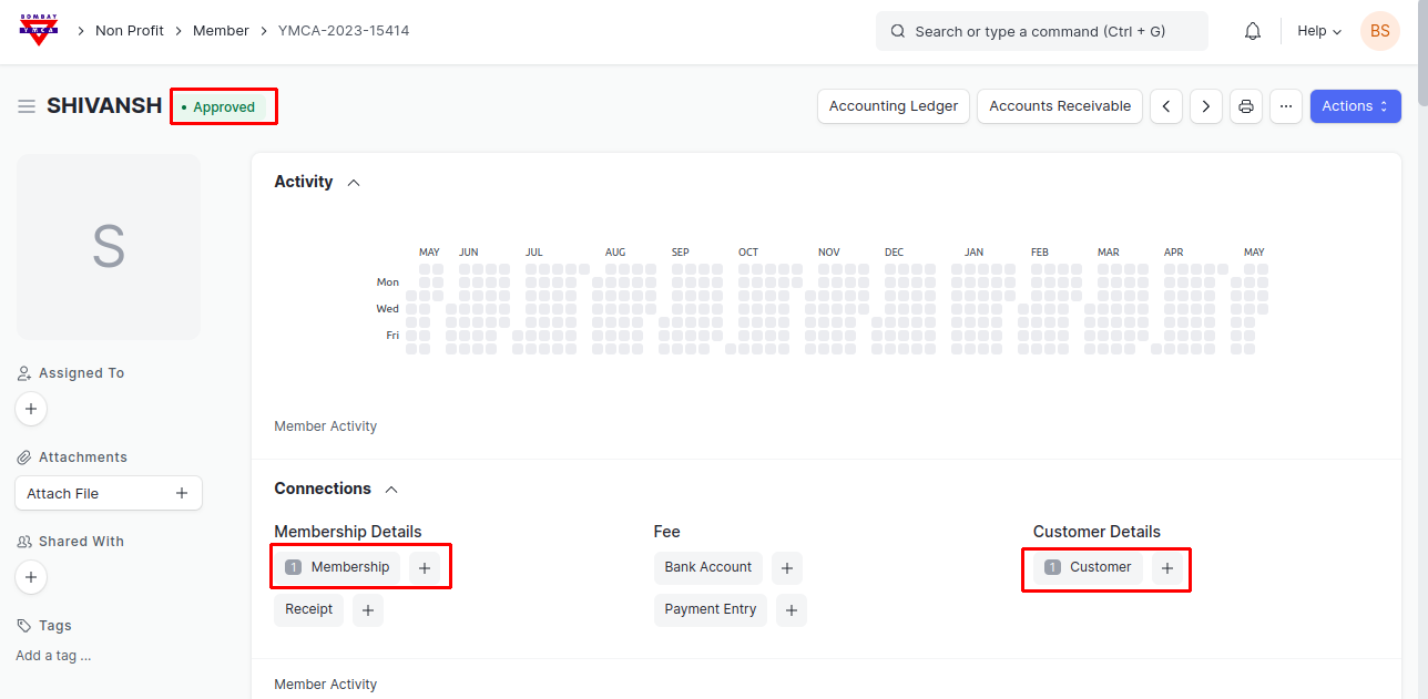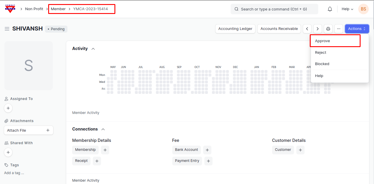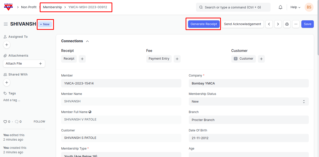 4) After Approval, membership form will get created, From here after filling necessary information you can generated Receipt for Membership.