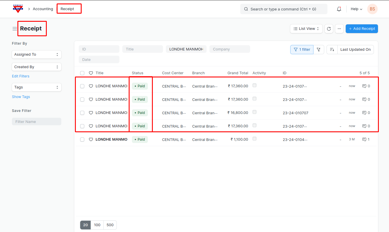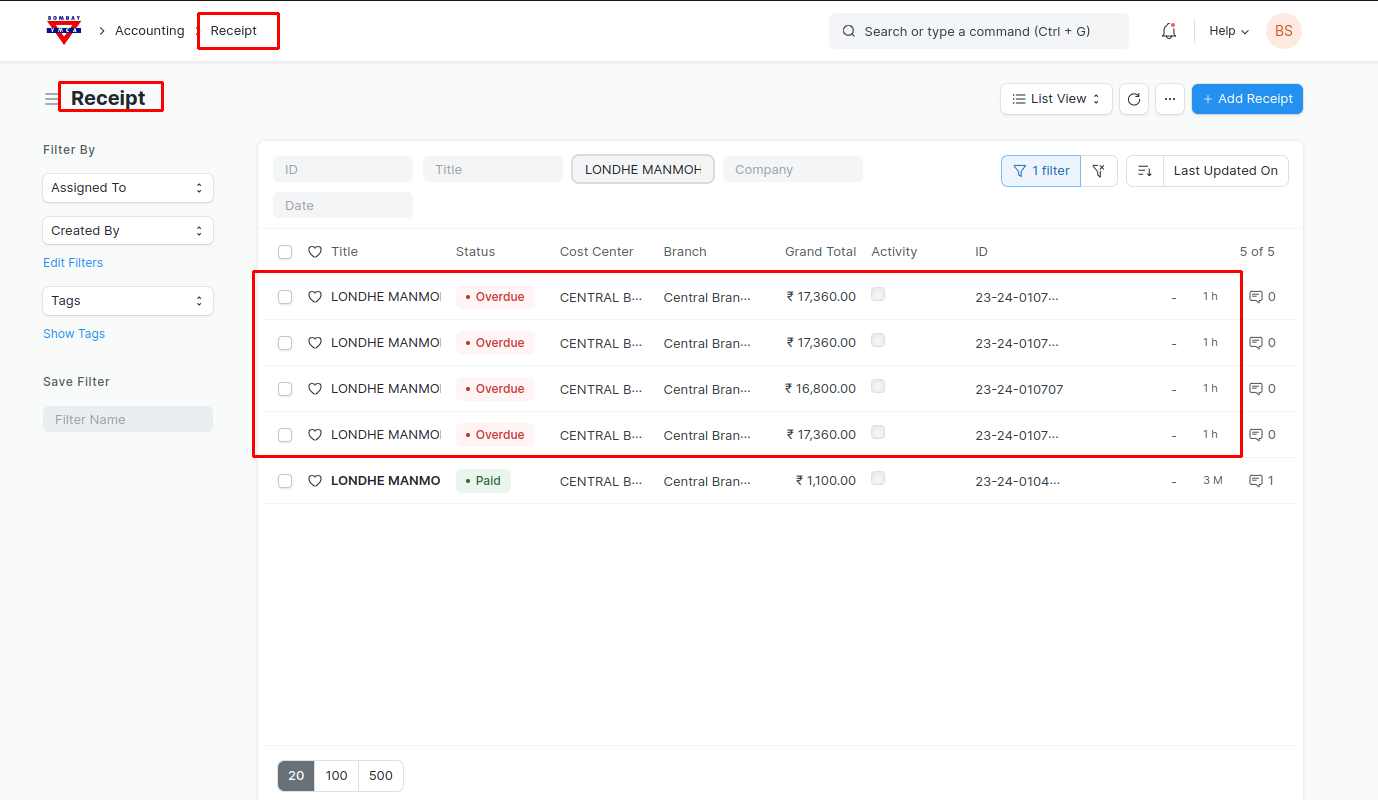 - The customer has made a single payment to settle all the dues at once, and we wish to generate a unified payment entry for all the outstanding receipts instead of creating separate payment entries for each individual receipt, to generate please proceed with the following steps.